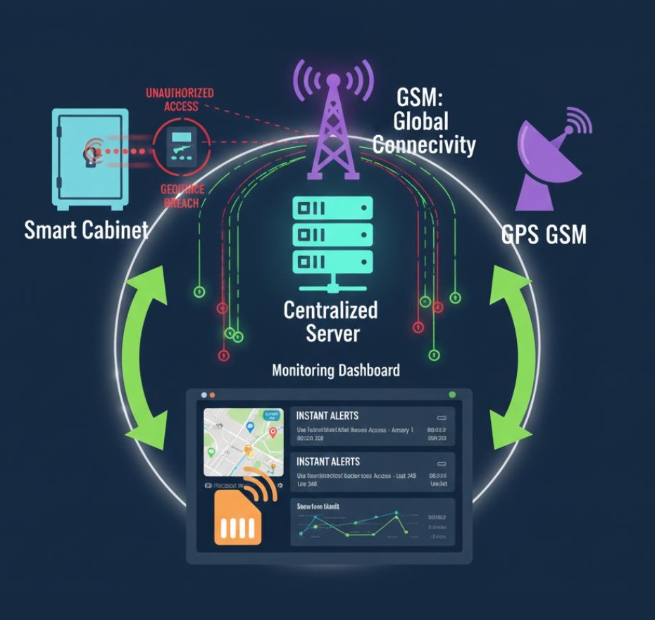 - Secure Global Connectivity: GSM ensures the data collected by GPS trackers and status updates from Smart Cabinets is reliably transmitted to the central platform. This capability is essential for tracking assets deployed anywhere a cellular signal exists. It maintains visibility even in remote or low-network zones.